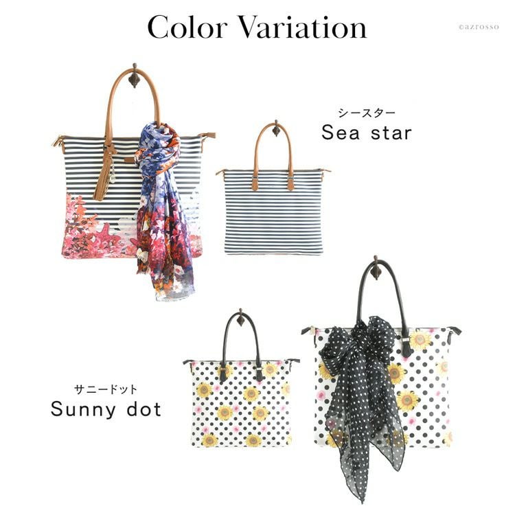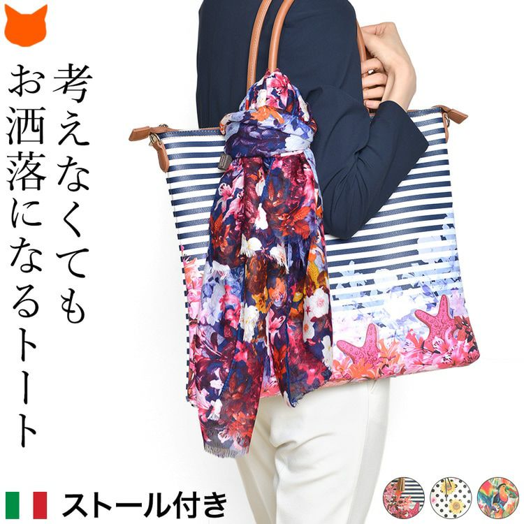 ▼特徴:ストール付き|トートバッグ|2way|ショルダーバッグ|斜め掛け|肩掛け|A4収納|大容量|沢山入る|花柄|ボーダー|ドット|総柄|軽い|軽量|マザーズバッグ|スクエア