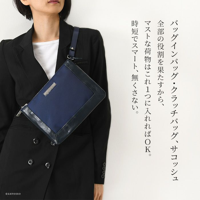 通常のバッグよりも少し横長のサイズなので、長財布、小さめの折り畳み傘も収納可能。いつものお財布、いつものバッグの中身をそのまま持ち歩けます。かっちりとしたデザインはお食事会やデート、セレモニーなどきちんとした場所でも上品になるので使い勝手◎
