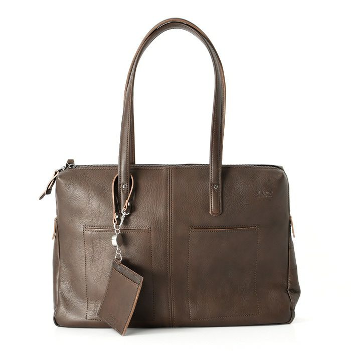 4. PC収納 トートバッグ 大容量 A4 本革 パスケース付き 日本製 豊岡 鞄 ビジネスバッグ レディース