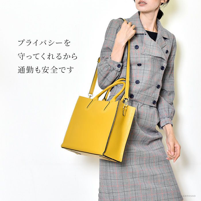 シンプル トートバッグ 本革 2way ビジネスバッグ 小さめ 黒 ブラック ブラウン 茶 イエロー 黄色 イタリア製