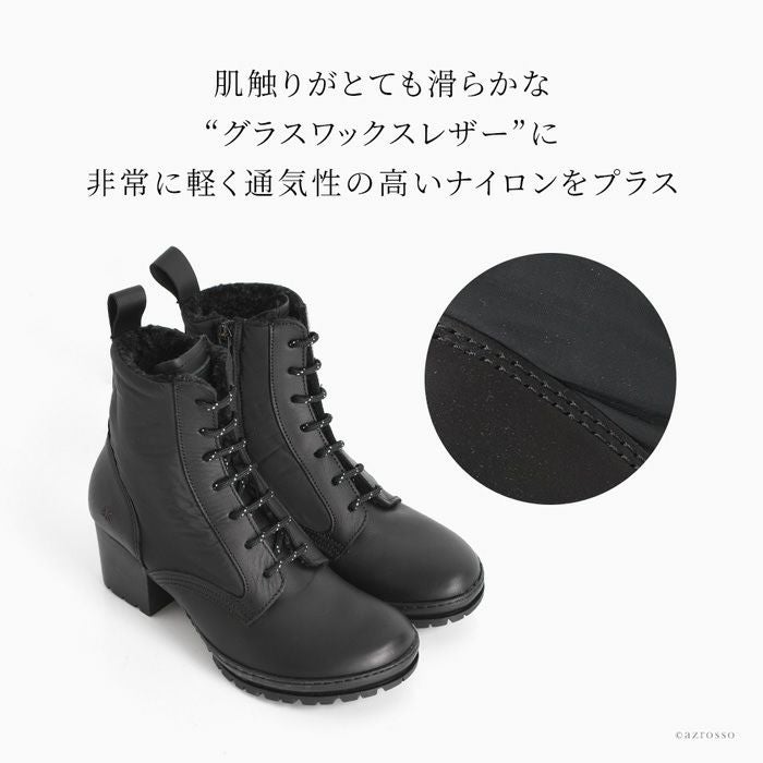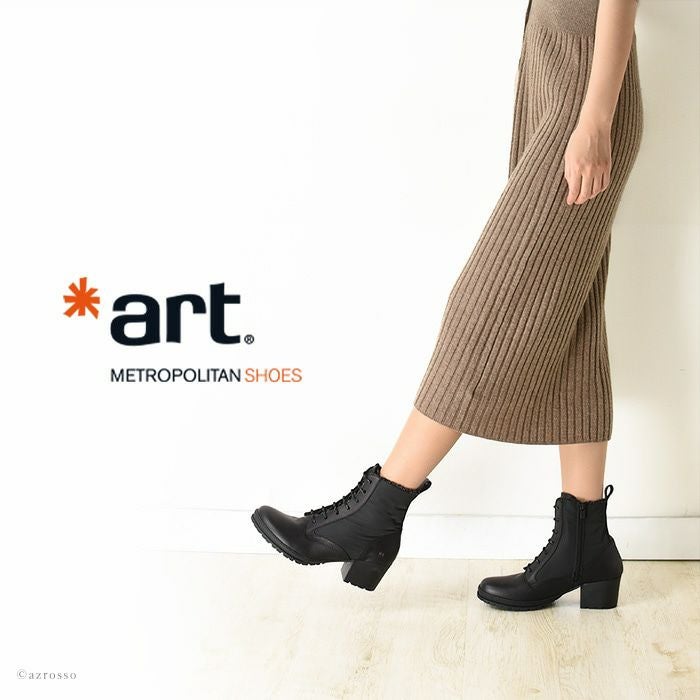 23cm-25.5cm│レースアップ ショートブーツ コンフォート ブーツ 編み上げブーツ スペイン製 ブランド art アート 本革 5cmヒール 黒 ブラック