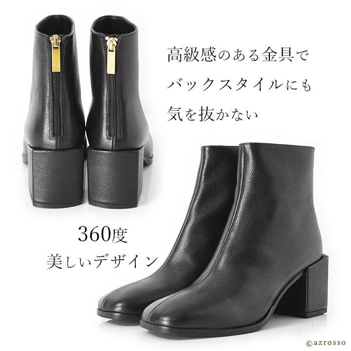 ▼特徴:スクエアトゥ|ショート丈|バックファスナー|ファスナー付き|バックジップ|太ヒール|チャンキーヒール|ミドルヒール|ハイヒール|痛くない|履きやすい|脱ぎやすい|歩きやすい|ショートブーツ|ブーティ