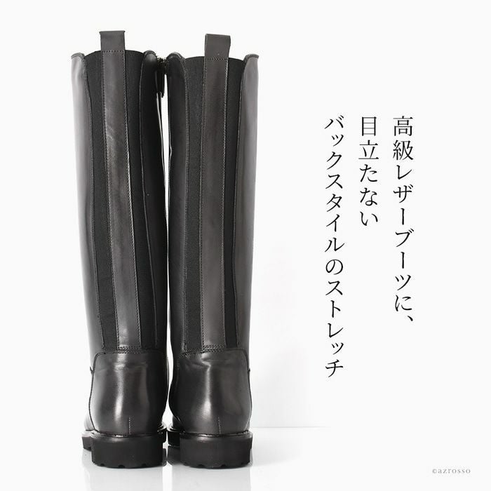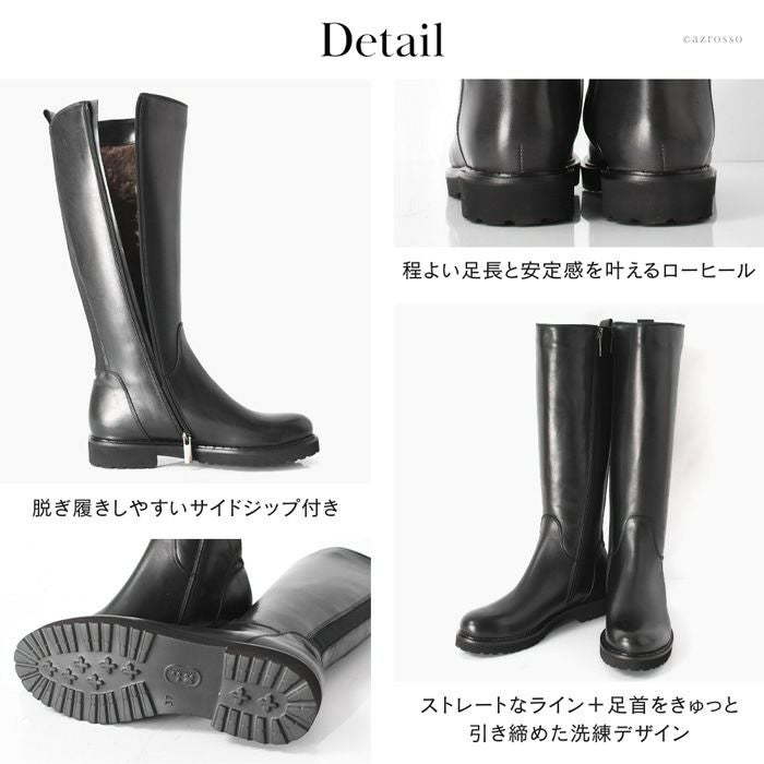 4. 23cm-26cm|内側 ムートン 暖かい ジョッキーブーツ ロングブーツ ローヒール 3cm ブランド イタリア製 レザー ブラック 黒 ダークグレー