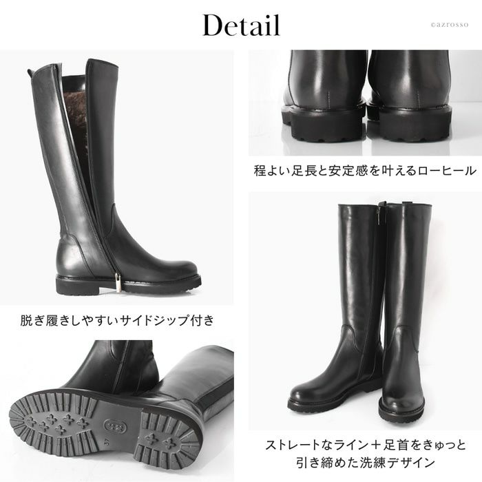 ▼特徴:ロングブーツ|ジョッキーブーツ|ローヒール|チャンキーヒール|太ヒール|ファスナー付き|サイドジップ|ストレッチ|アーモンドトゥ|乗馬ブーツ