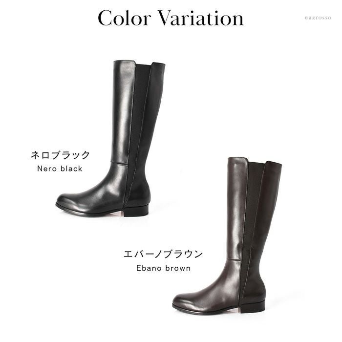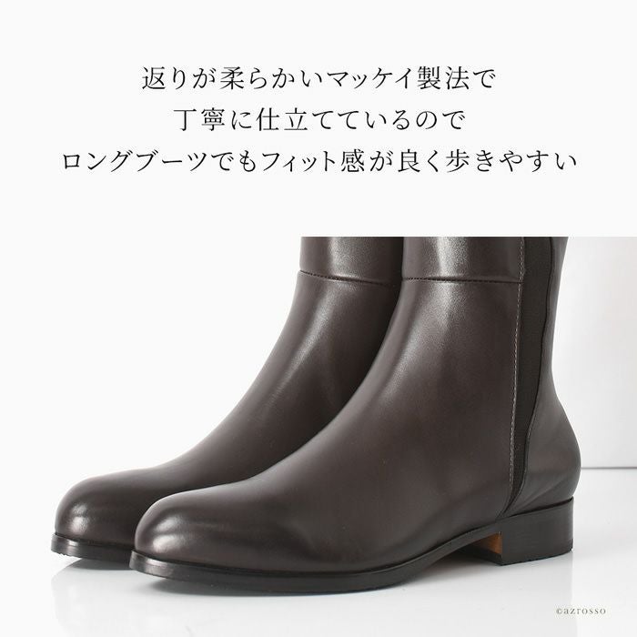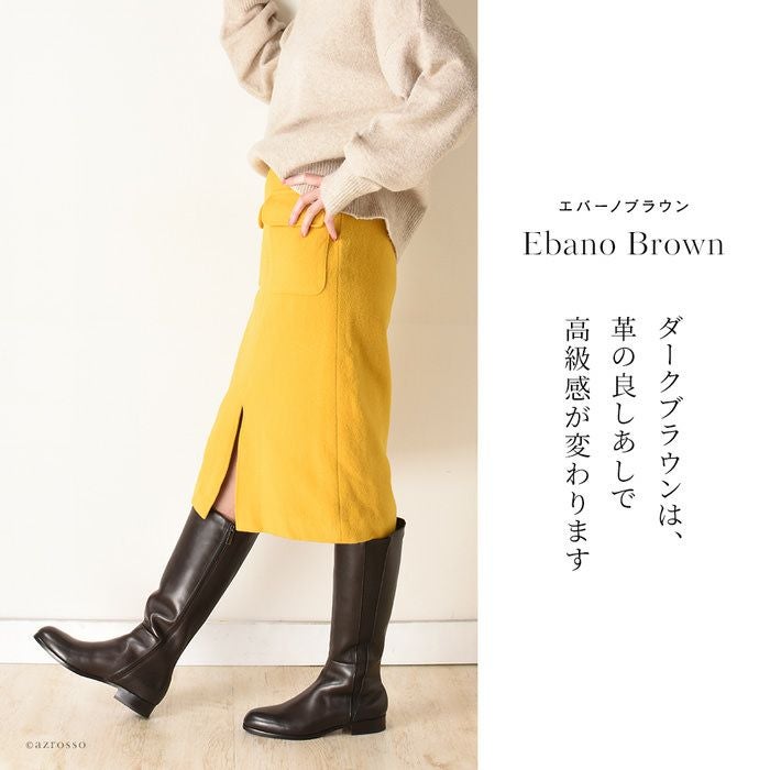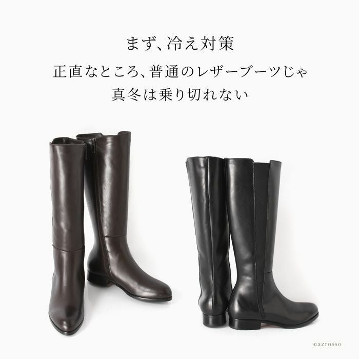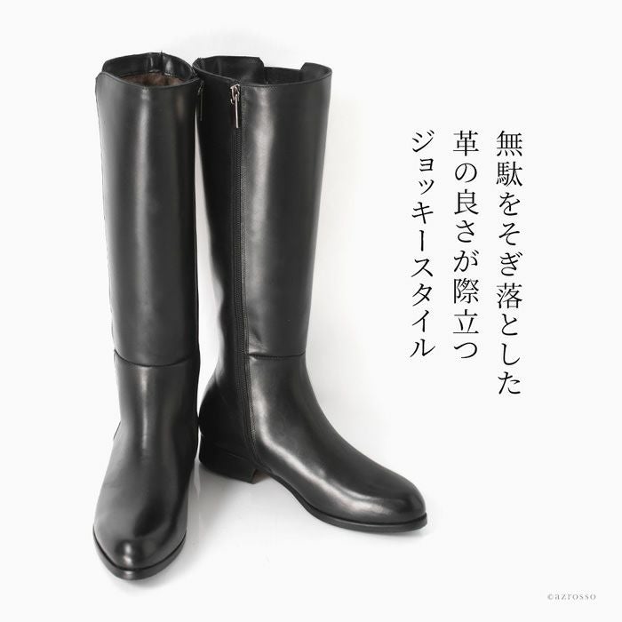 4. 23cm-26cm|内側 ムートン 暖かい ジョッキーブーツ ロングブーツ ローヒール 3cm ブランド イタリア製 レザー ブラック 黒 ダークブラウン