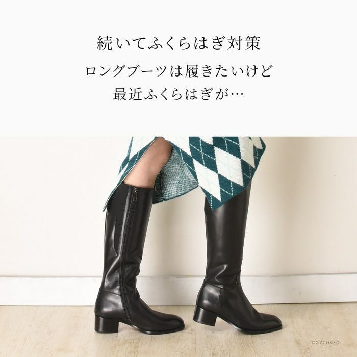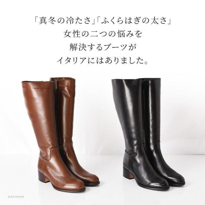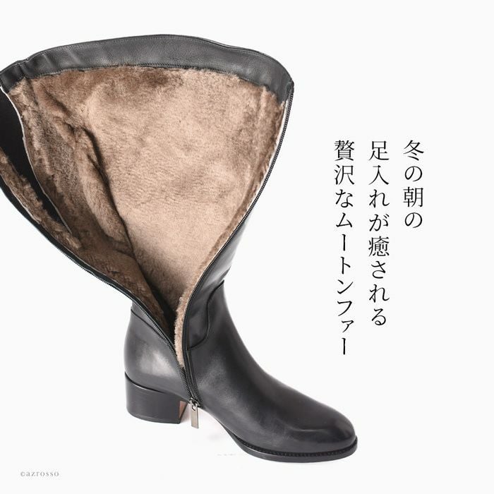 4. 23cm-26cm|内側 ムートン 暖かい ジョッキーブーツ ロングブーツ ローヒール 3cm ブランド イタリア製 レザー ブラック 黒 キャメル ブラウン