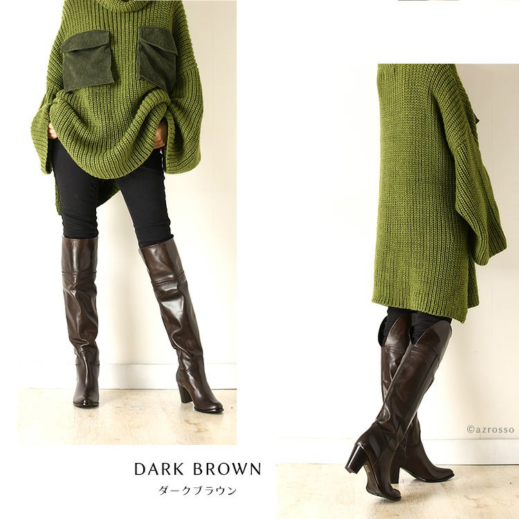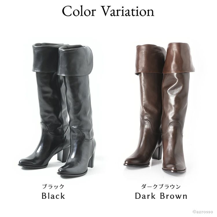 22-24.5cmのみ|ヒール7cm 折り返して2way ロングブーツ&ニーハイブーツ イタリア製 ブランド コルソローマ9 CORSO ROMA 9 黒 ブラック ブラウン
