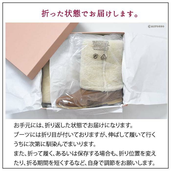 ブーツには折り目が付いておりますが、伸ばして履いて行くうちに次第に馴染んでまいります。