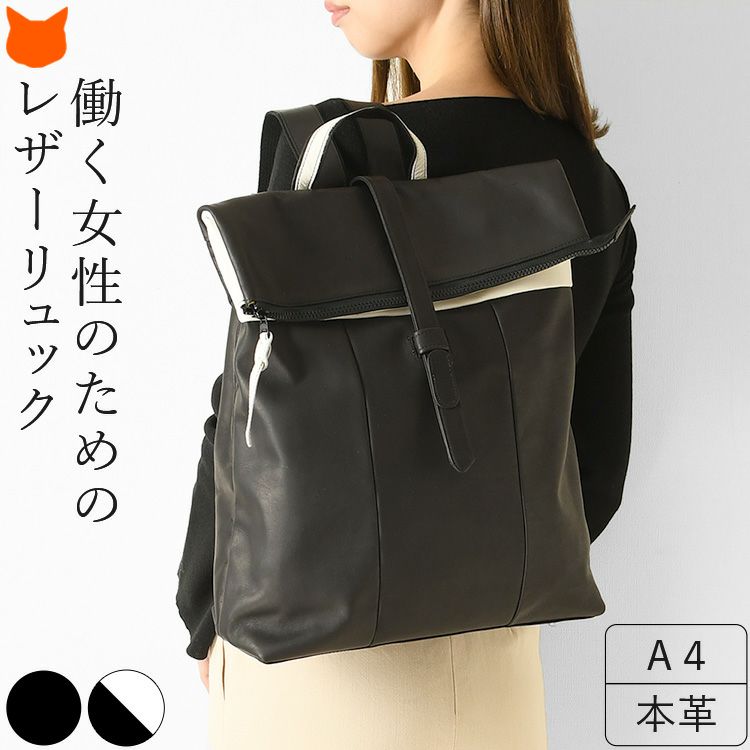 女性らしいシルエットも人気!はっ水加工 A4もパソコンも入る 本革レザーリュック 大容量 自転車通勤にも 13~14インチPC収納