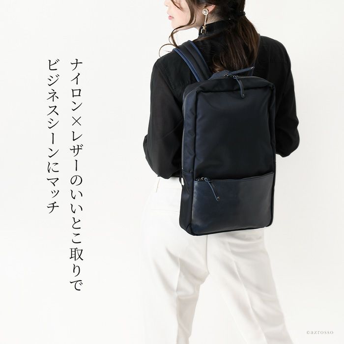 4.超軽量!ナイロン×レザーA4×PC収納ビジネスリュック
