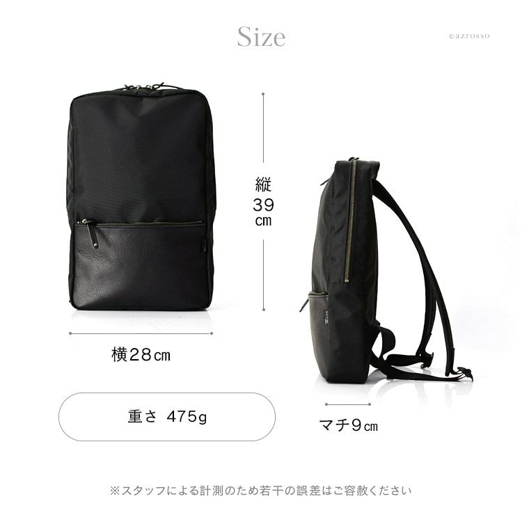 A4書類や15.6インチノートPCがしっかり入る大容量設計ながら、洗練されたシルエットでスマートな印象に。