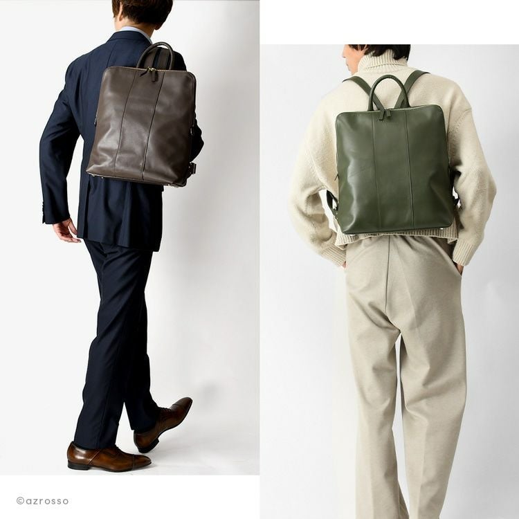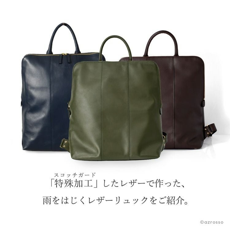 雨をはじくはっ水加工 A4もパソコンも入る 本革レザーリュック 大容量 日本製 ブランド 軽量 メンズ PC ネイビー ブラウン ブラック カーキ 撥水だから自転車通勤にも
