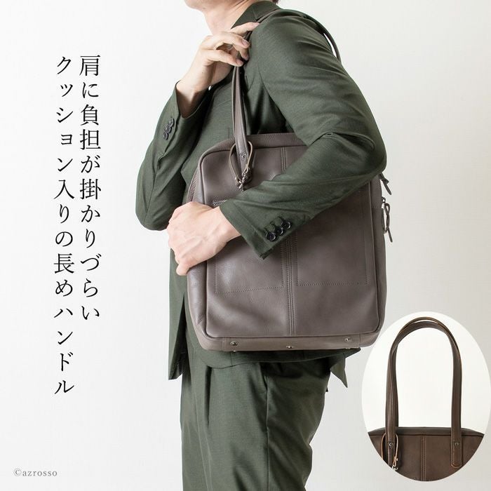 PC収納 通勤バッグ 縦型 トートバッグ 大容量 A4 本革 パスケース付き 日本製 ビジネスバッグ メンズ