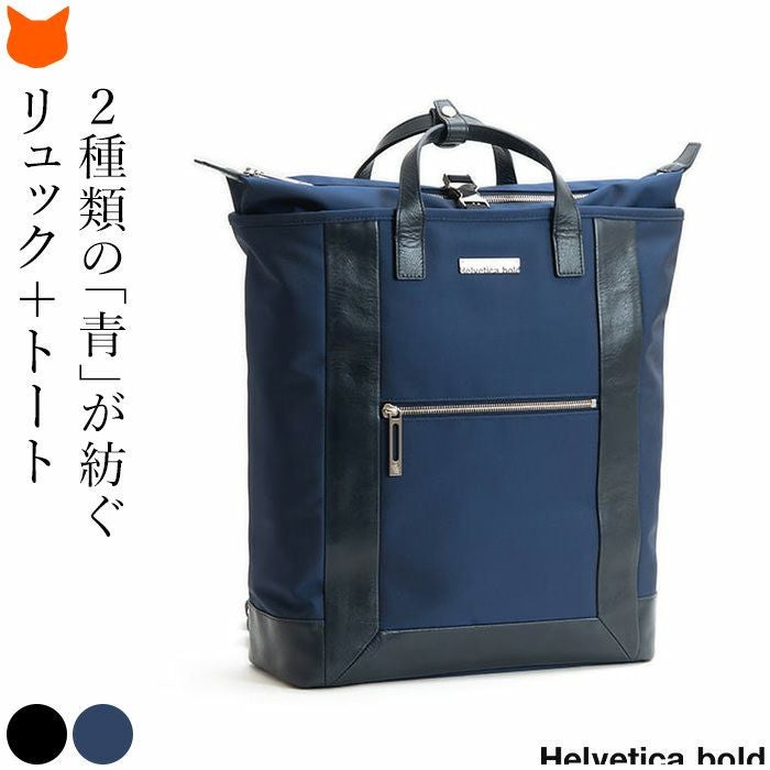 日本の老舗バッグメーカーが贈る極上の日本製リュックとトートバッグの2wayバッグ。高級ナイロン生地を用いて撥水、軽量、機能的。2色の糸を用いて立体感を実現。高い収納力でネイビーとブラックの2色 2way ビジネスリュック トートバッグ ナイロン レザー 大容量 軽量 ブラック ネイビー 日本製 バッグ ブランド ヘルベチカボールド Helvetica bold ビジネスバッグ