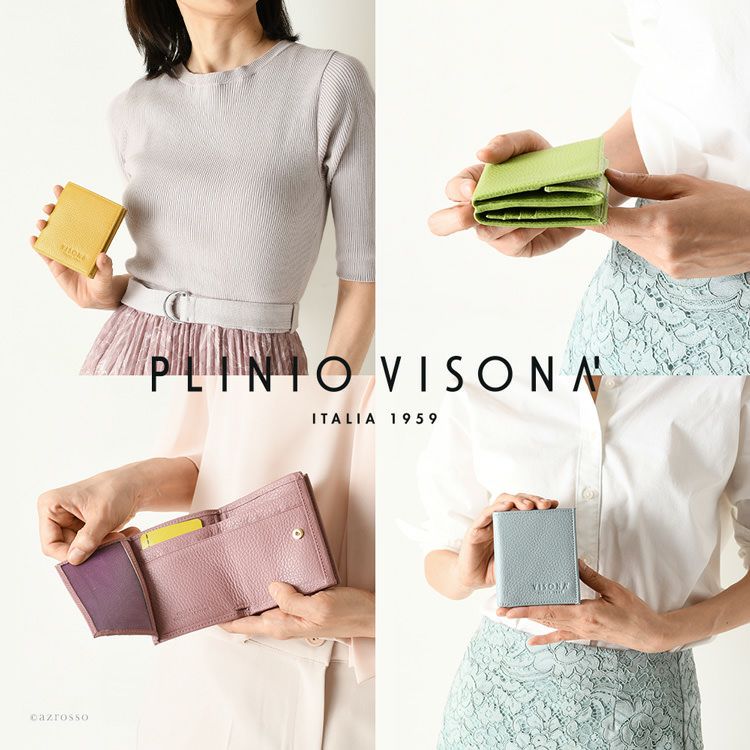 カードも小銭もかさばらない、ミニマル派女性のための、60年以上続くイタリアブランドの二つ折り型の本革財布 イタリア製 ミニ財布 本革 レザー 二つ折り財布 ブランド PLINIO VISONA プリニオ ヴィソナ 黄色 イエロー ブルー ピンク グリーン