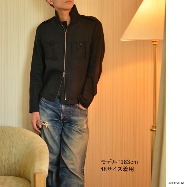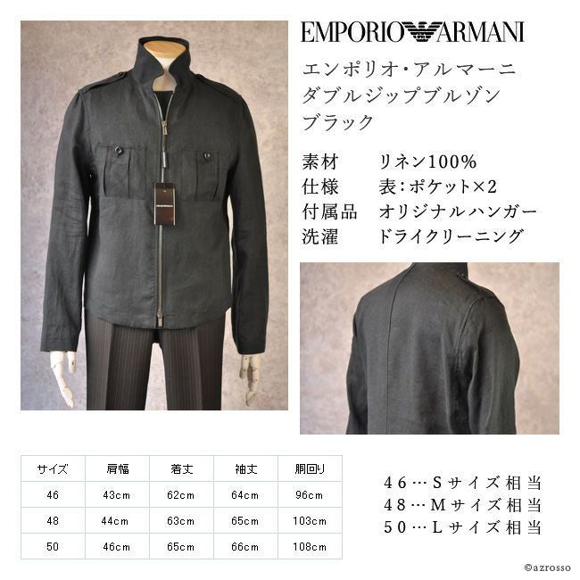 【残り5着】リネン100% ブルゾンコート エンポリオ アルマーニ EMPORIO ARMANI ダブルジップ ブルゾン ジャケット メンズ アウター ブラック 黒