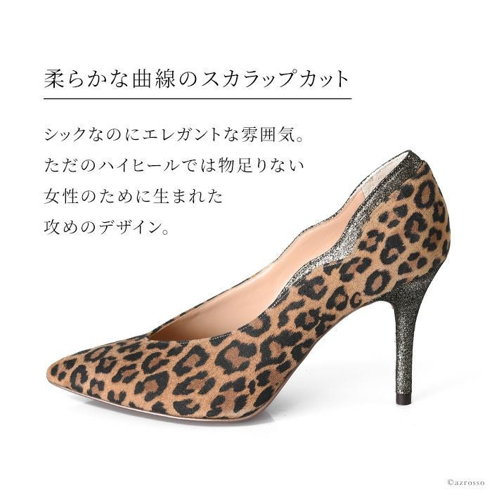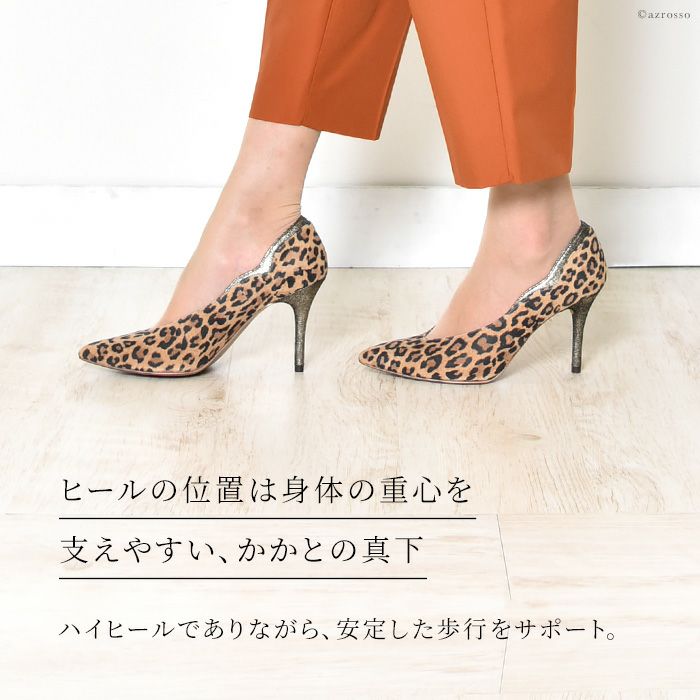 ▼特徴:細身ヒール|ハイヒール|ヒョウ柄|豹柄|ポインテッドトゥ|とんがり|Vカット||美脚|足長|痛くない|クッションインソール|グリッター|キラキラ|ラメ|ウェーブカット|スカラップカット
