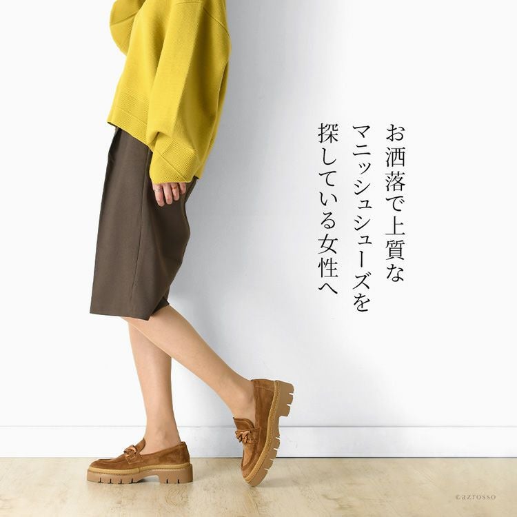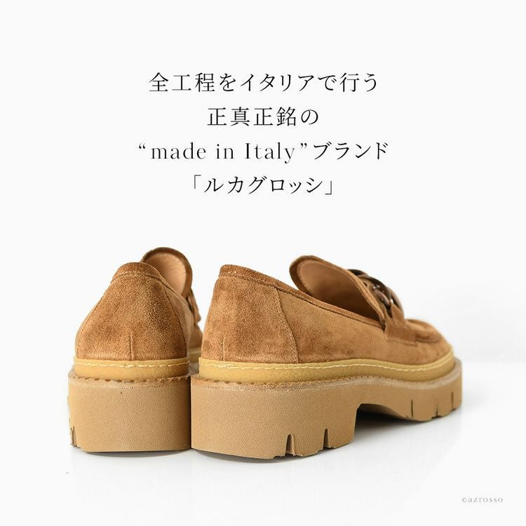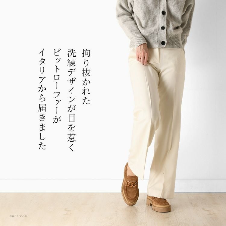 ローファー 厚底 ヒール 4cm 本革 ビット ローファー コンフォート パンプス マニッシュシューズ ビットローファー タンクソール 革 ヌバック レザー イタリア製 茶色 ブラウン 起毛 靴