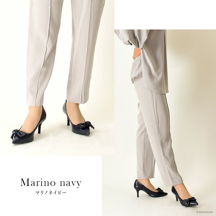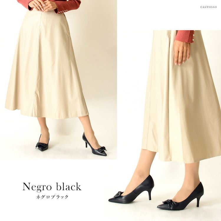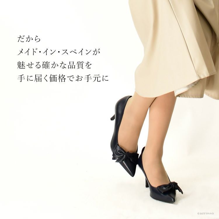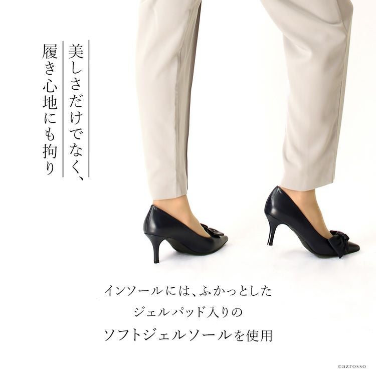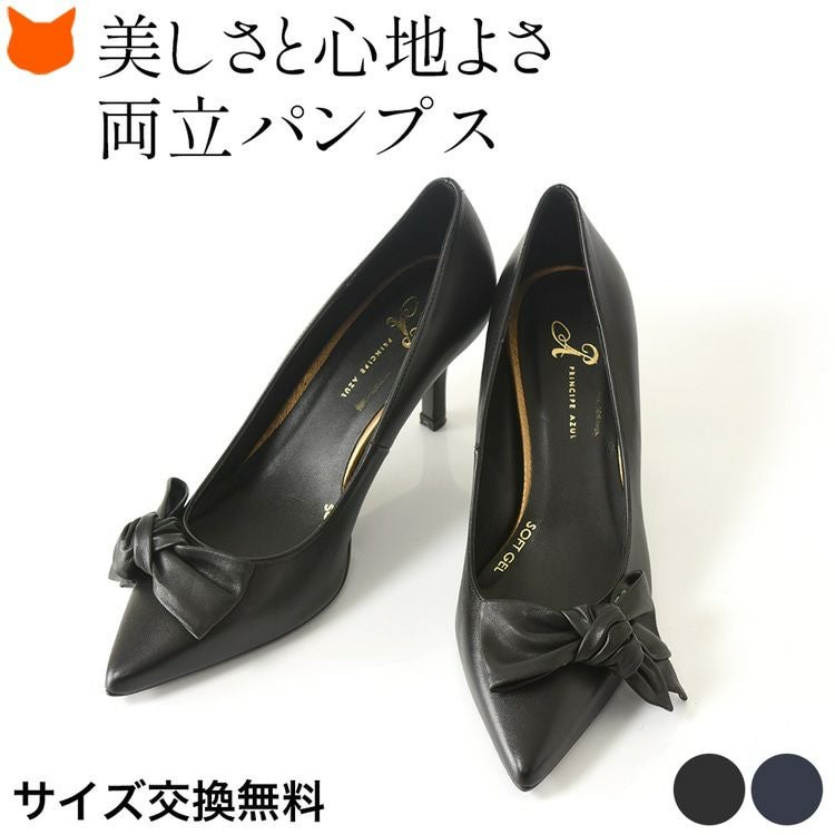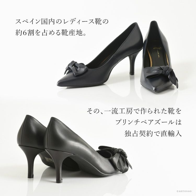 22cm-25.5cm|ビッグリボン パンプス ヒール7cm レザー ポインテッドトゥ 本革 黒 ブラック ネイビー 紺