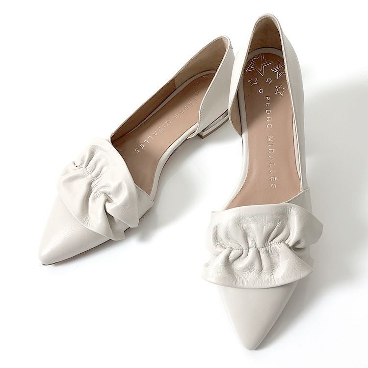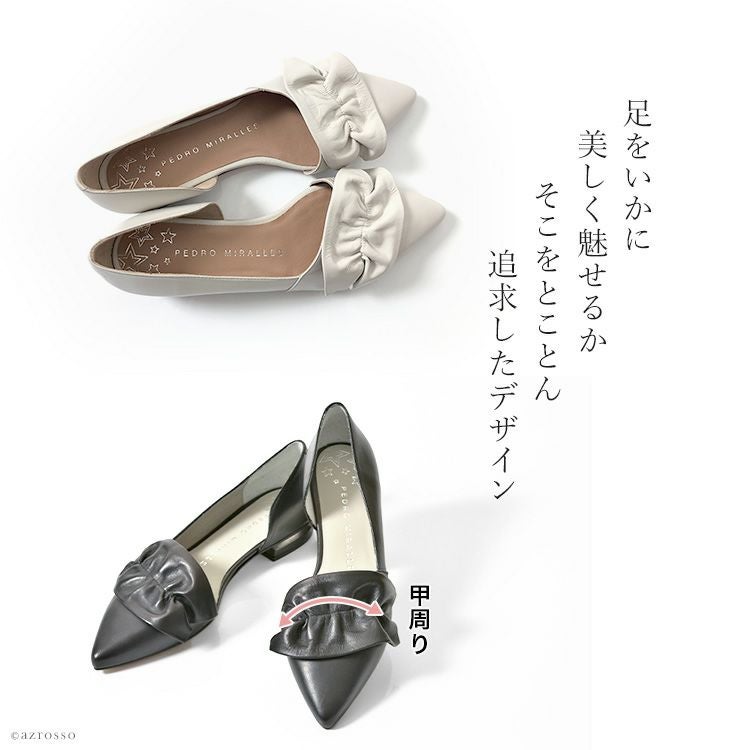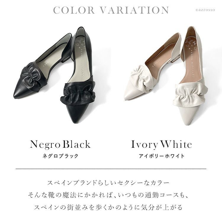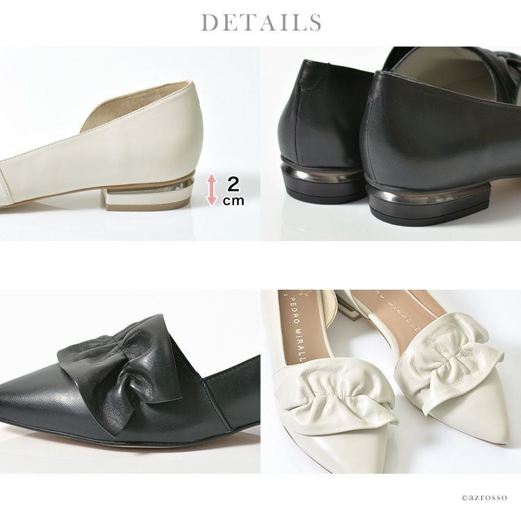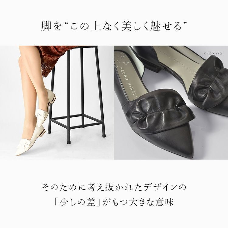 22cm-25cm|レザー フラット シューズ レディース サイド オープン パンプス 本革 ぺたんこ 靴 ポインテッド バレエシューズ ブラック 黒 アイボリー ホワイト 白 歩きやすい 大きい サイズ 25cm 25.5cm ペドロミラーリェス