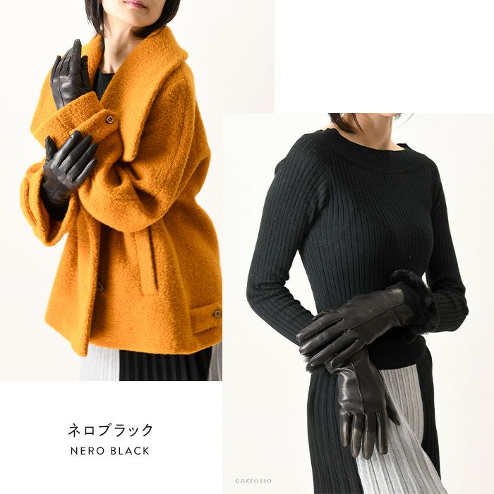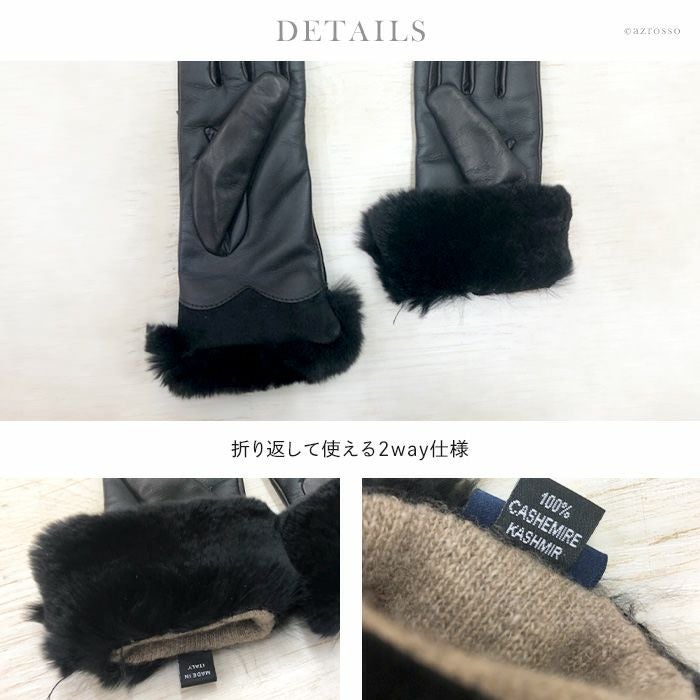 2way レザー 手袋 ファー付き カシミヤ ライナー スマホ対応 イタリア製 レディース ブランド GALA GLOVES ガラ グローブ 黒 ブラック