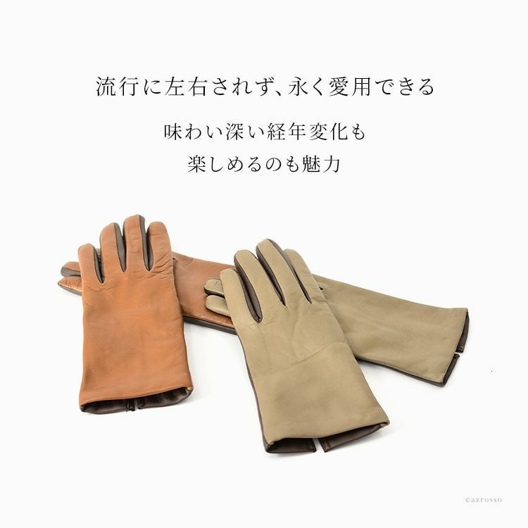 イタリア製 手袋 スマホ対応 薄手 本革 レディース 革手袋 カシミヤ 暖かい フィット ベージュ ブラウン イタリア ブランド