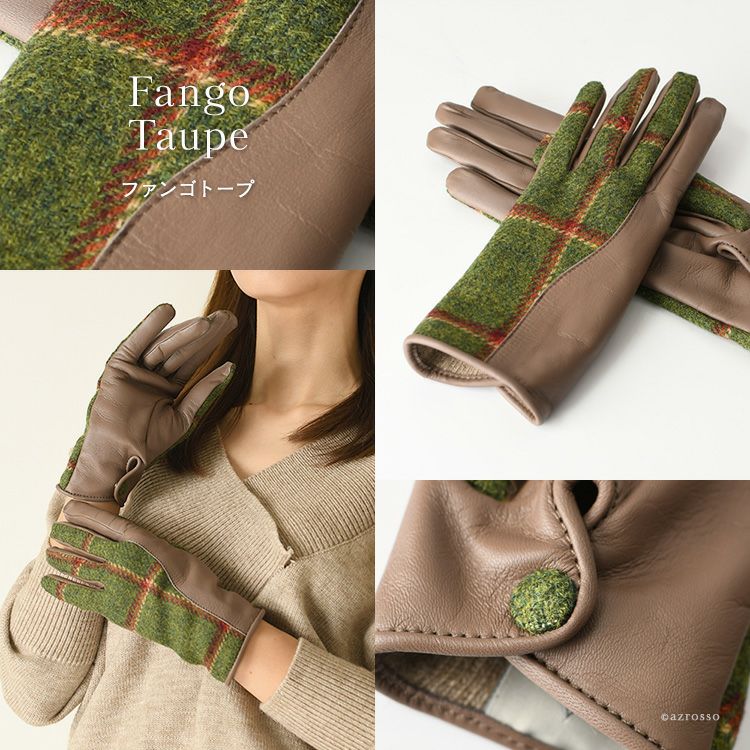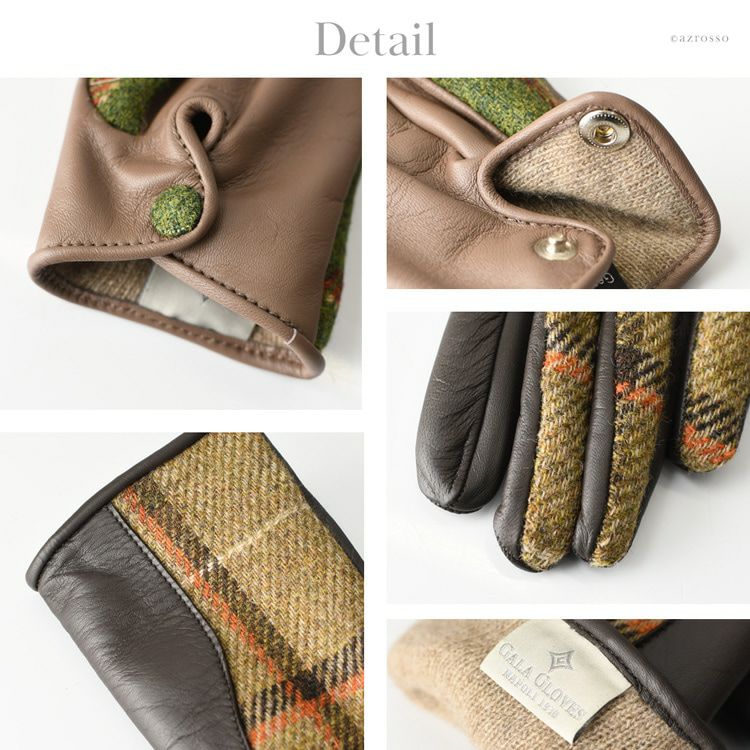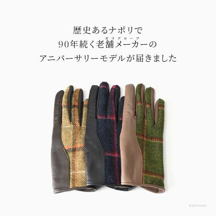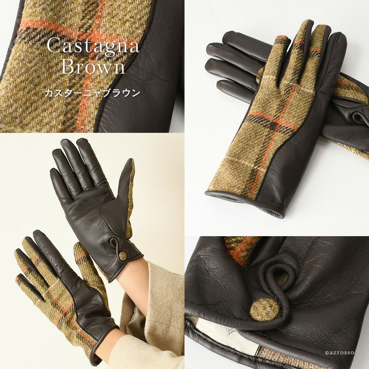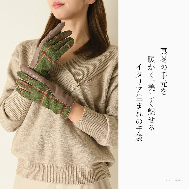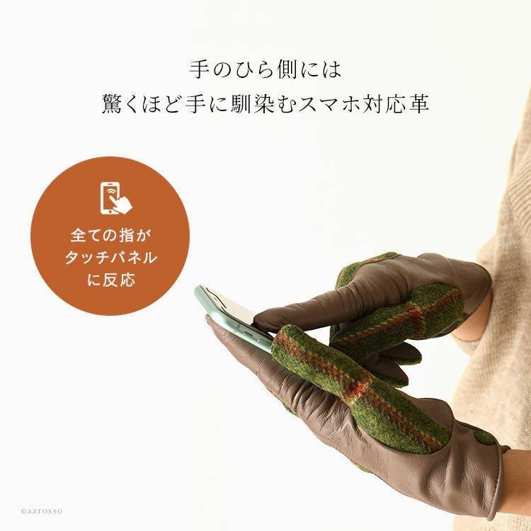 ▼特徴:スマホ対応|タッチパネル対応|レザーグローブ|ウール|カシミヤ100|暖かい|防寒|チェック柄|バイカラー|レザー切替グローブ|異素材ミックス|Holland & Sherry|ホーランド&シェリー