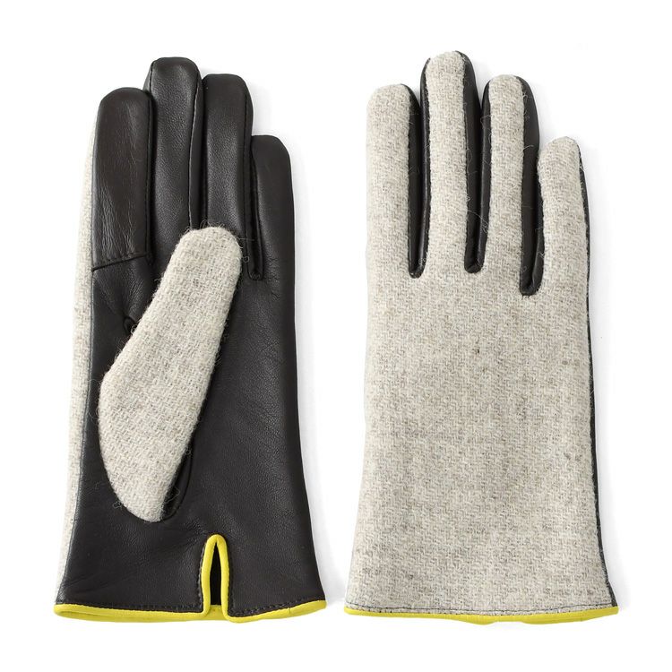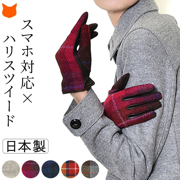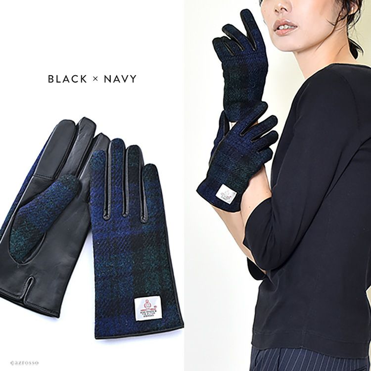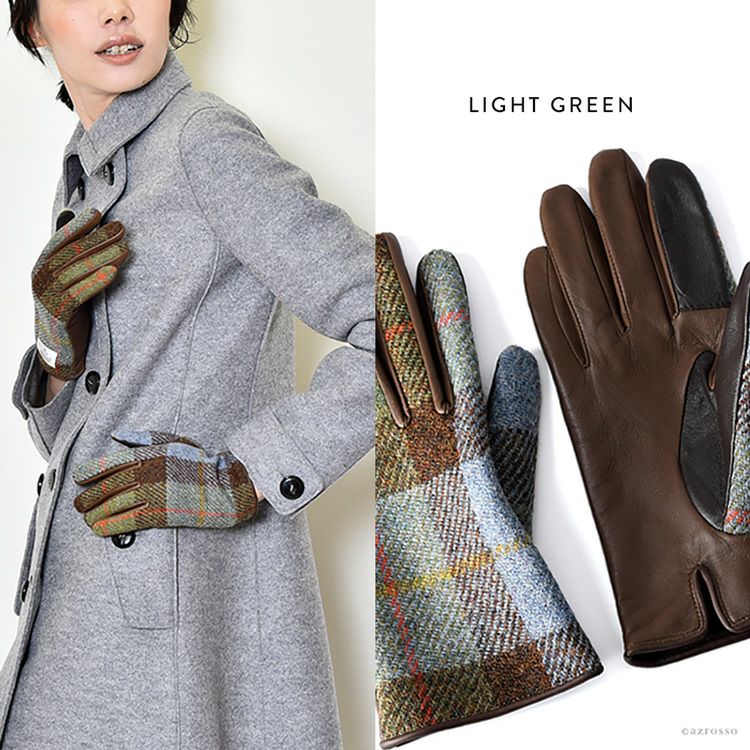 スマホ対応 ハリスツイード×ラムレザー 手袋 チェック柄 レディース レザーグローブ 日本製 手袋 イタリアで大賞受賞の日本ブランド「クロダ」抗菌グローブ【通常ネコポス配送】