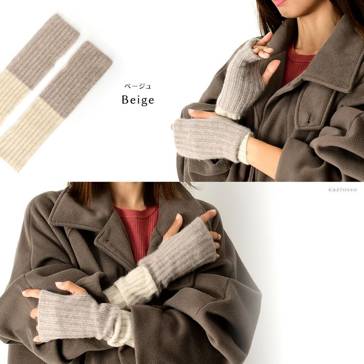 カシミヤ ニット アームウォーマー 4way 指なし手袋 スマホ対応 暖かい 指先が出るフィンガーレスグローブ レディース