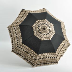 マラガバリアの日傘に施されているレースの刺繍は、カットワーク刺繍と呼ばれる、模様の形に切り取った布地の輪郭線をかがることで、立体感のある優美なレースを作る刺繍です。
