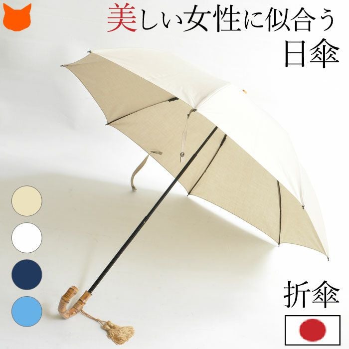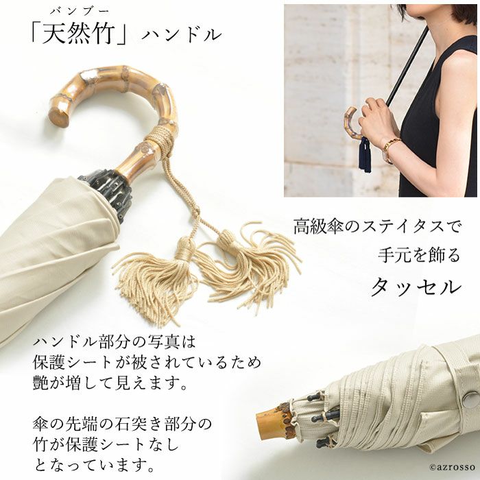 天然竹のハンドルとタッセルで、女性の手元を飾る日傘