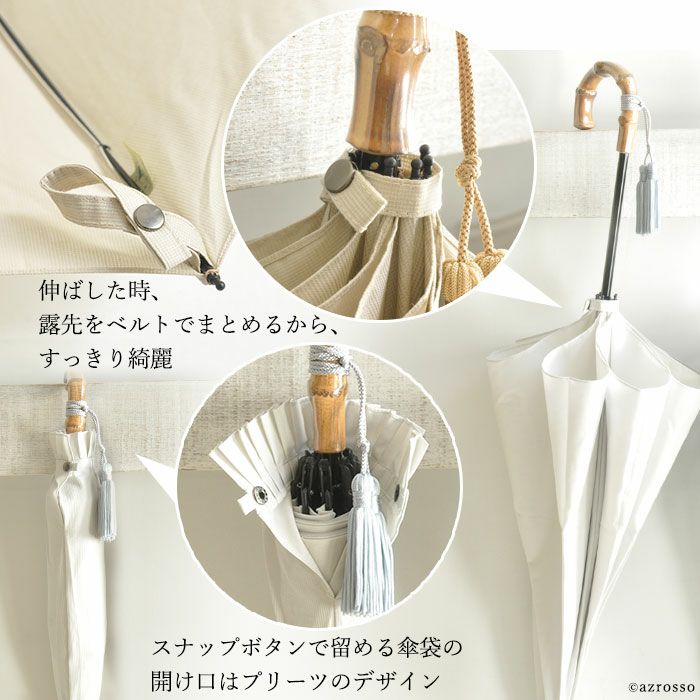 傘の柄の美しさ、形の良さを引きたてるシンプルなデザインのため、露先をまとめるのはベルトを使います。