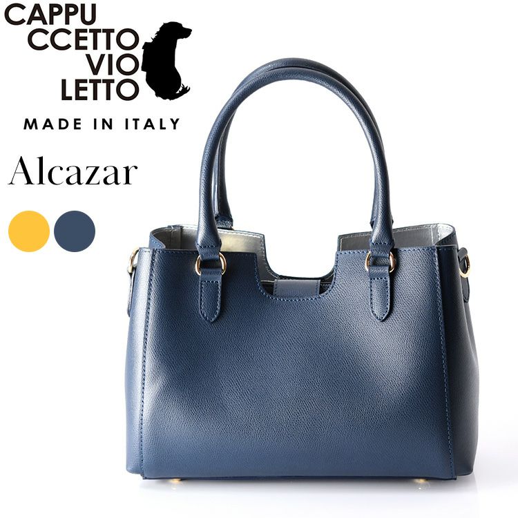 レザー ハンドバッグ ビジネス 3way ショルダー付き 本革 ネイビー イエロー イタリア製 ブランド カプチェット ヴィオレット Cappuccetto Violetto Alcazar アルカサル ビジネス バッグ