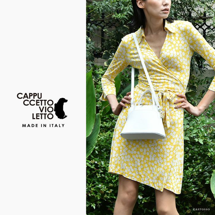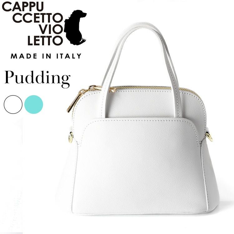 2way ハンドバッグ レザー ミニバッグ ショルダーストラップ付き 本革 ホワイト 白 ターコイズ ブルー イタリア製 ブランド カプチェット ヴィオレット Cappuccetto Violetto Pudding プティング