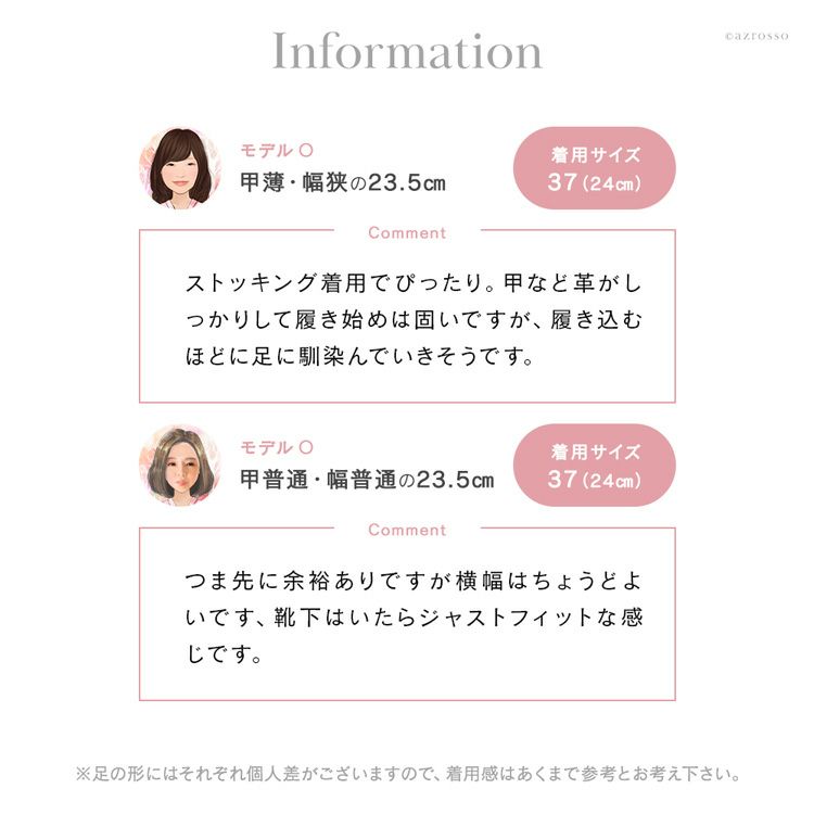 ※足の形にはそれぞれ個人差がございますので、着用感はあくまで参考とお考え下さい。