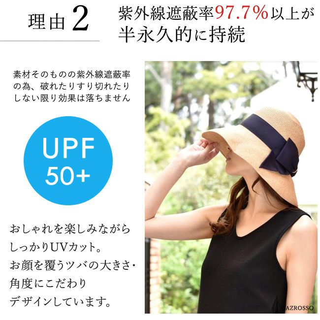 【理由2】紫外線遮蔽率97.7%以上(UPF50+)。かぶるだけでほとんどの紫外線をカットしてくれます。