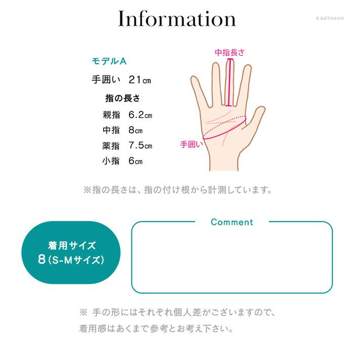 ※手の形にはそれぞれ個人差がございますので、着用感はあくまで参考とお考え下さい。