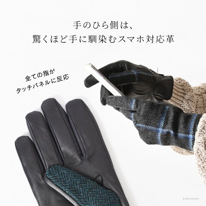 ハリスツイード×スマホ対応 クロダのきれいめメンズ手袋