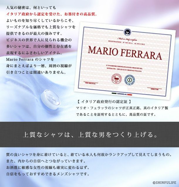 世界最高峰のメンズシャツブランド Mario Ferrara(マリオ フェラッラ)コットンシャツ dandy/Yシャツ/ビジネスシャツ/ワイシャツ/ドレスシャツ/フォーマル/ポールスミス/バーバリー/誕生日/ターンブル&アッサー/父の日や男性へのプレゼントに