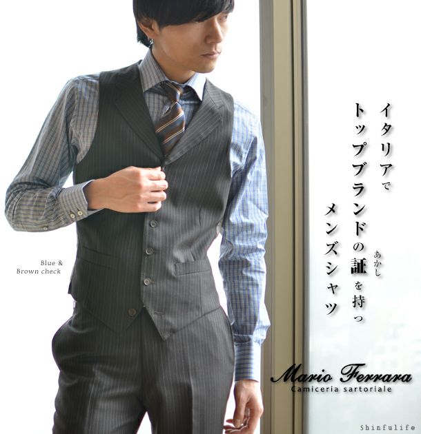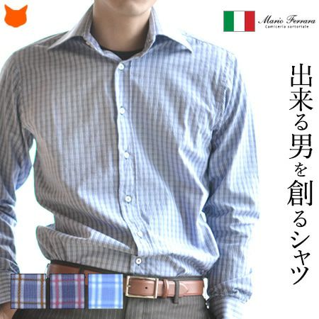 イタリア国内で特に高品質と認められたメンズシャツブランド Mario Ferrara/ワイシャツ/ビジネスシャツ/長袖 チェックシャツ/マリオ・フェラッラ/Yシャツ/フォーマル/ドレスシャツ/ターンブル&アッサー/誕生日/ポールスミス/父の日や男性へのプレゼントに