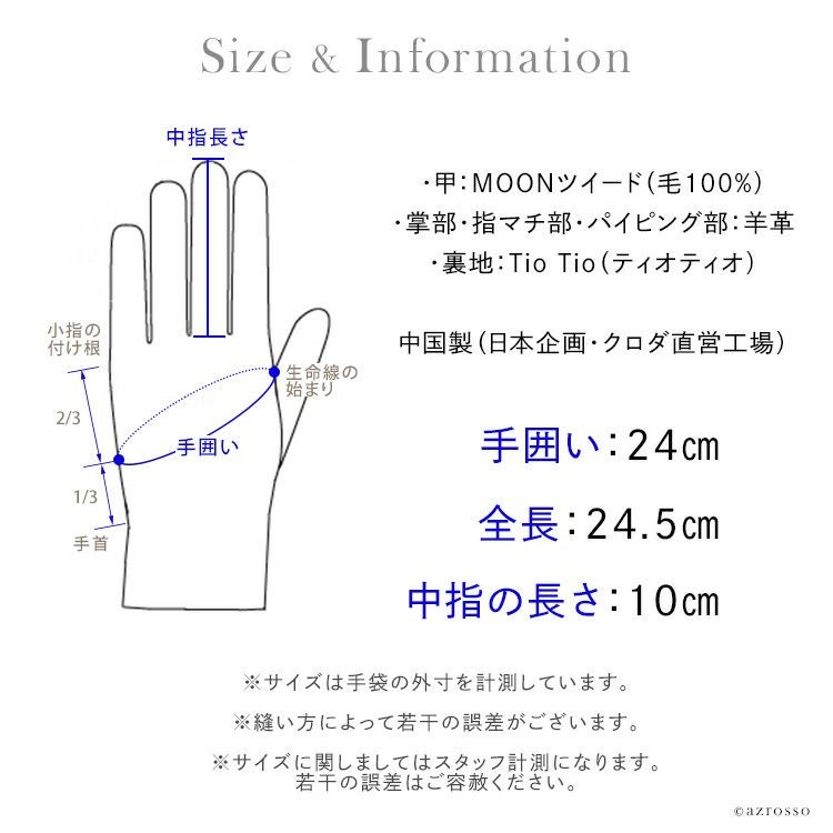 高級スーツのジャケット、コートなどに起用されることの多いMOONのツイード生地。誕生日やクリスマスなど、特別な日に一流のアイテムを送りたいけれど、ジャケットやコートではさすがに大げさすぎるというとき、手袋は大変贈りやすいアイテムです。