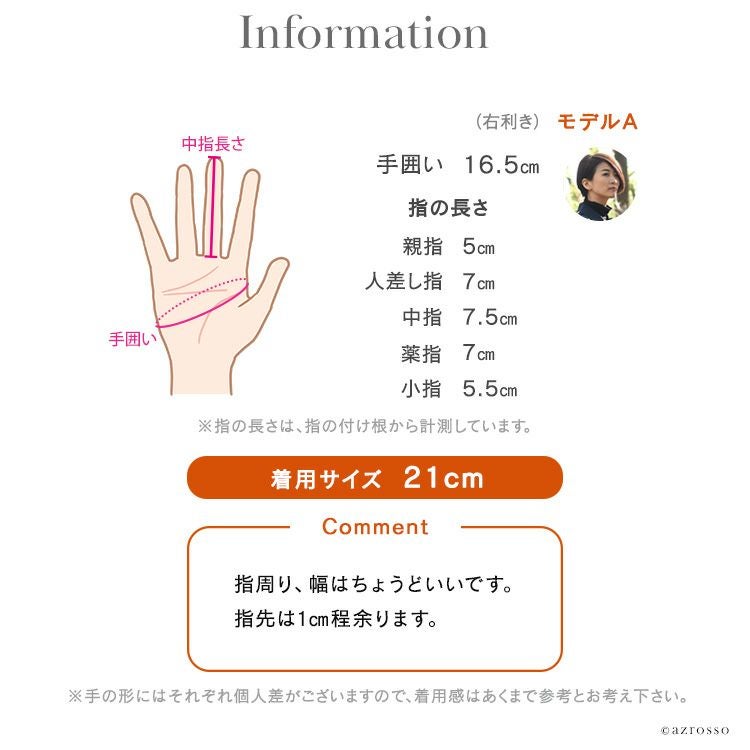 ※手の形にはそれぞれ個人差がございますので、着用感はあくまで参考とお考え下さい。