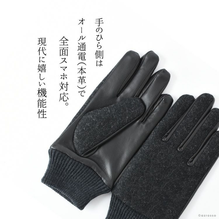 ▼特徴:スマホ対応|タッチパネル対応|スマートフォン対応|通電革|ツイード生地|マイクロボア|暖かい|防寒|レザーグローブ