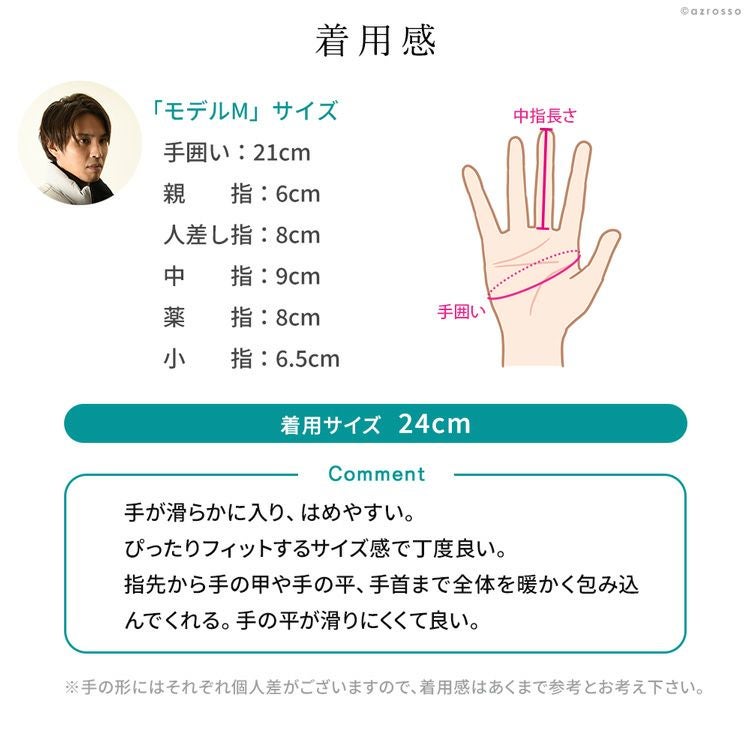 ※手の形にはそれぞれ個人差がございますので、着用感はあくまで参考とお考え下さい。