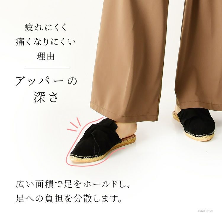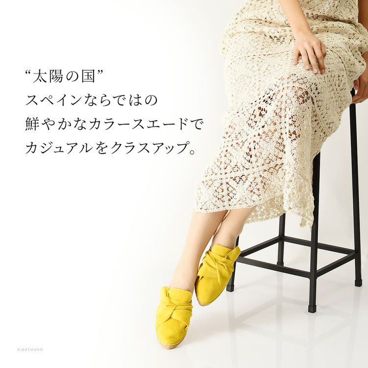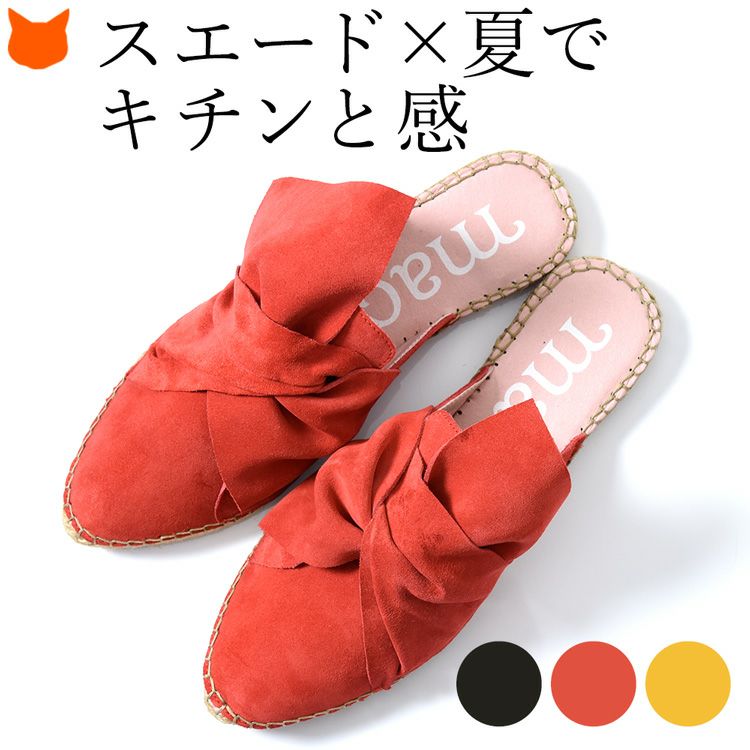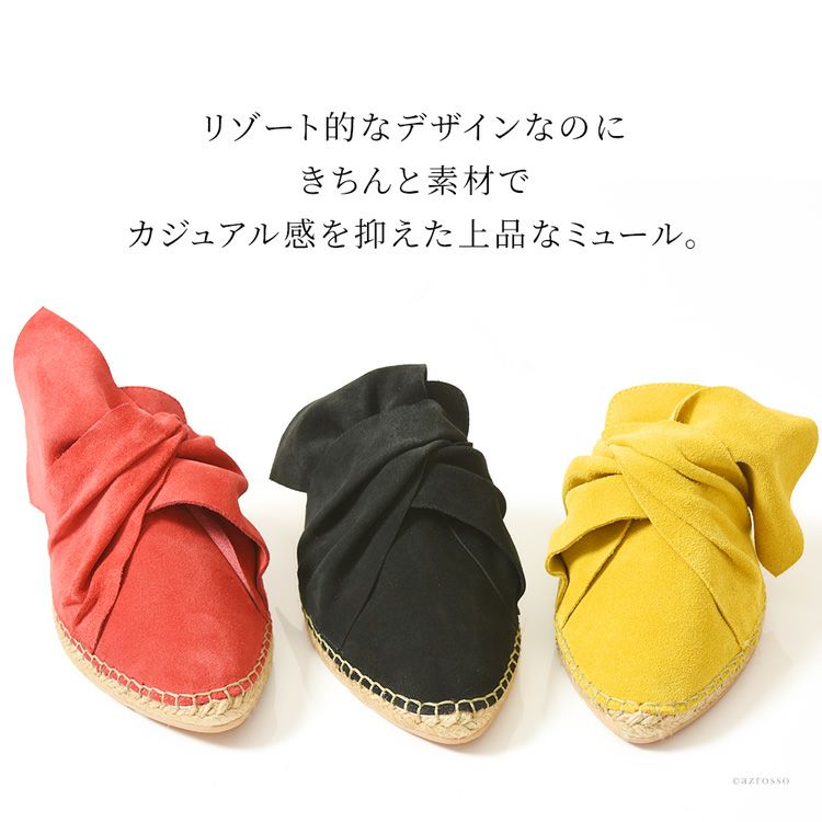 4. スエード レザー エスパドリーユ ミュール サンダル フラット ヒール ぺったんこ レディース スペイン ブランド ブラック 黒 レッド 赤 イエロー 黄色 大きいサイズ 25cm