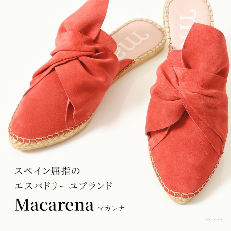 本場スペイン ブランドmacarena(マカレナ) の「きちんと感」のスエード×「リゾート感」エスパドリーユの上品ミュール サンダル 本革 歩きやすい 疲れない 痛くない スリッパ つっかけのように履ける 室内履きにも スエード レザー エスパドリーユ ミュール サンダル フラット ヒール ぺったんこ レディース スペイン ブランド ブラック 黒 レッド 赤 イエロー 黄色 大きいサイズ 25cm