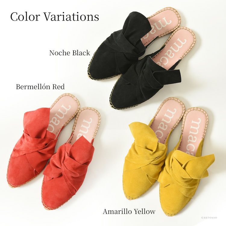macarena マカレナ リボン エスパドリーユ ミュール サンダル ブラック、レッド、イエロー