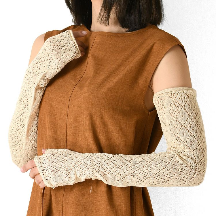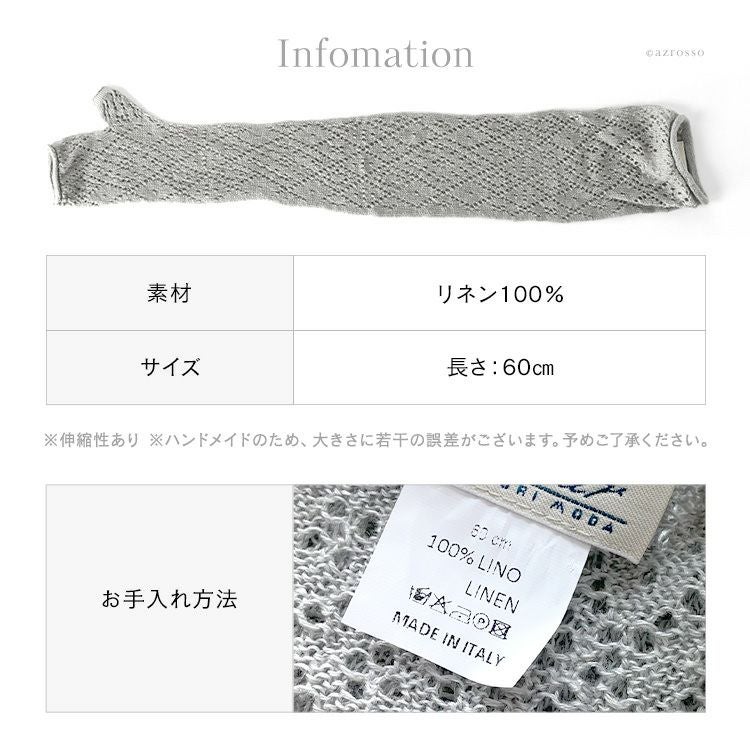 リネン アームカバー ロング 60cm レース 指穴つき UVケア 冷房対策 イタリア製 ブランド カリマール 【通常ネコポス配送】
