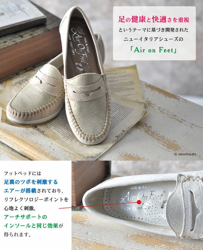 AIR ON FEET ヒールローファー レザーコンフォートシューズ イタリア製