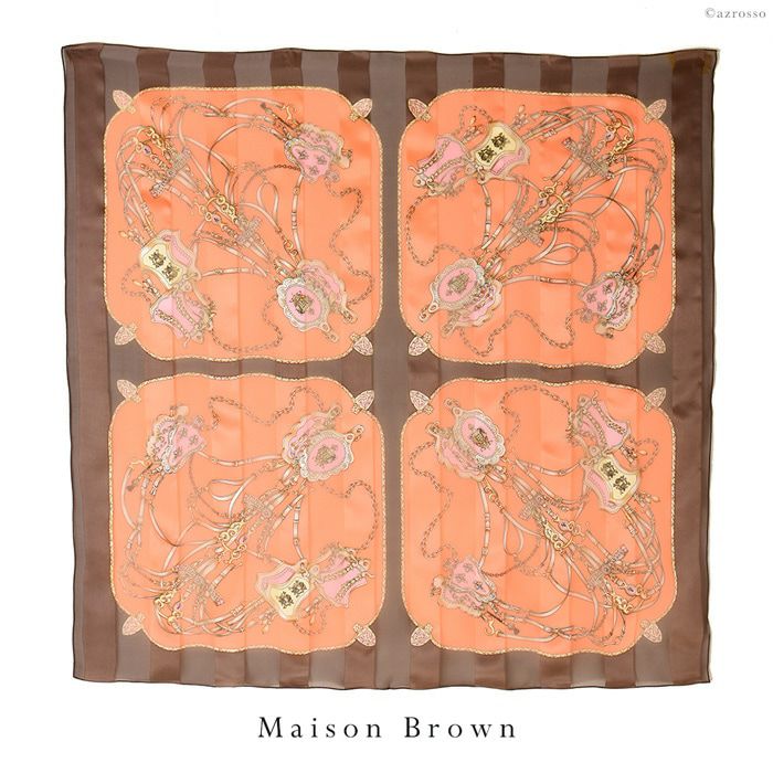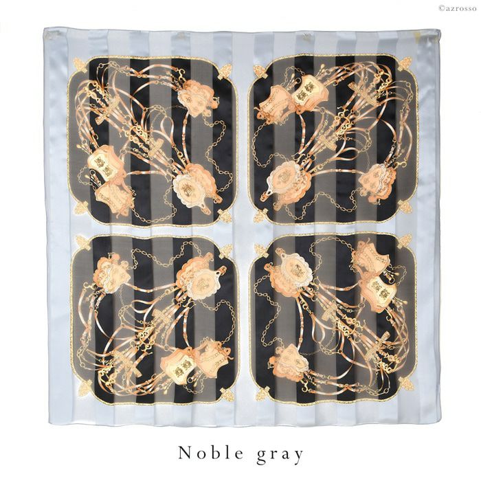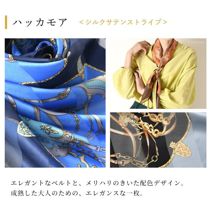 ハッカモア シルクサテンストライプスカーフ 日本製 横浜スカーフ ベルト 大判 グレー ブラウン ネイビー 茶 紺